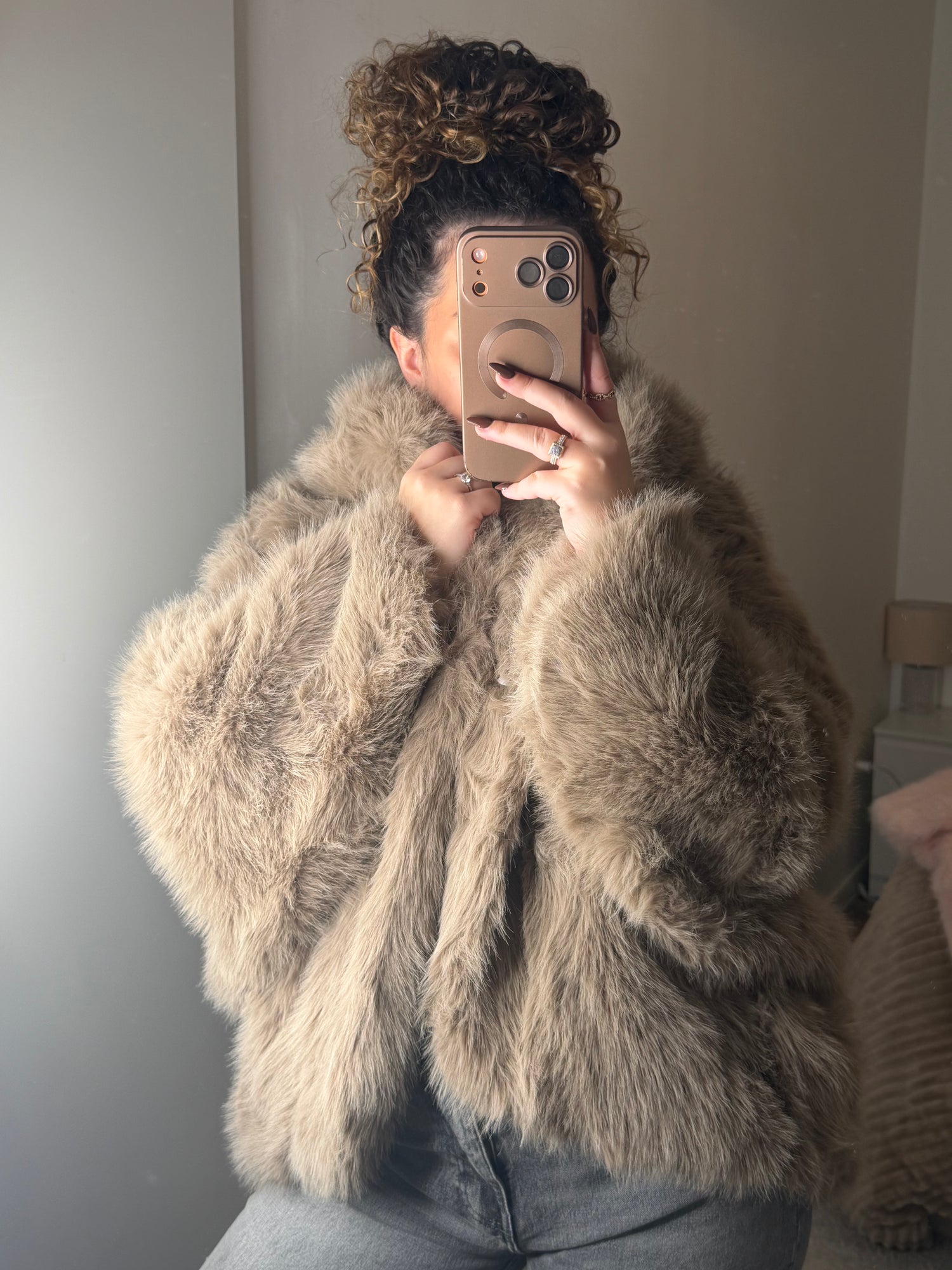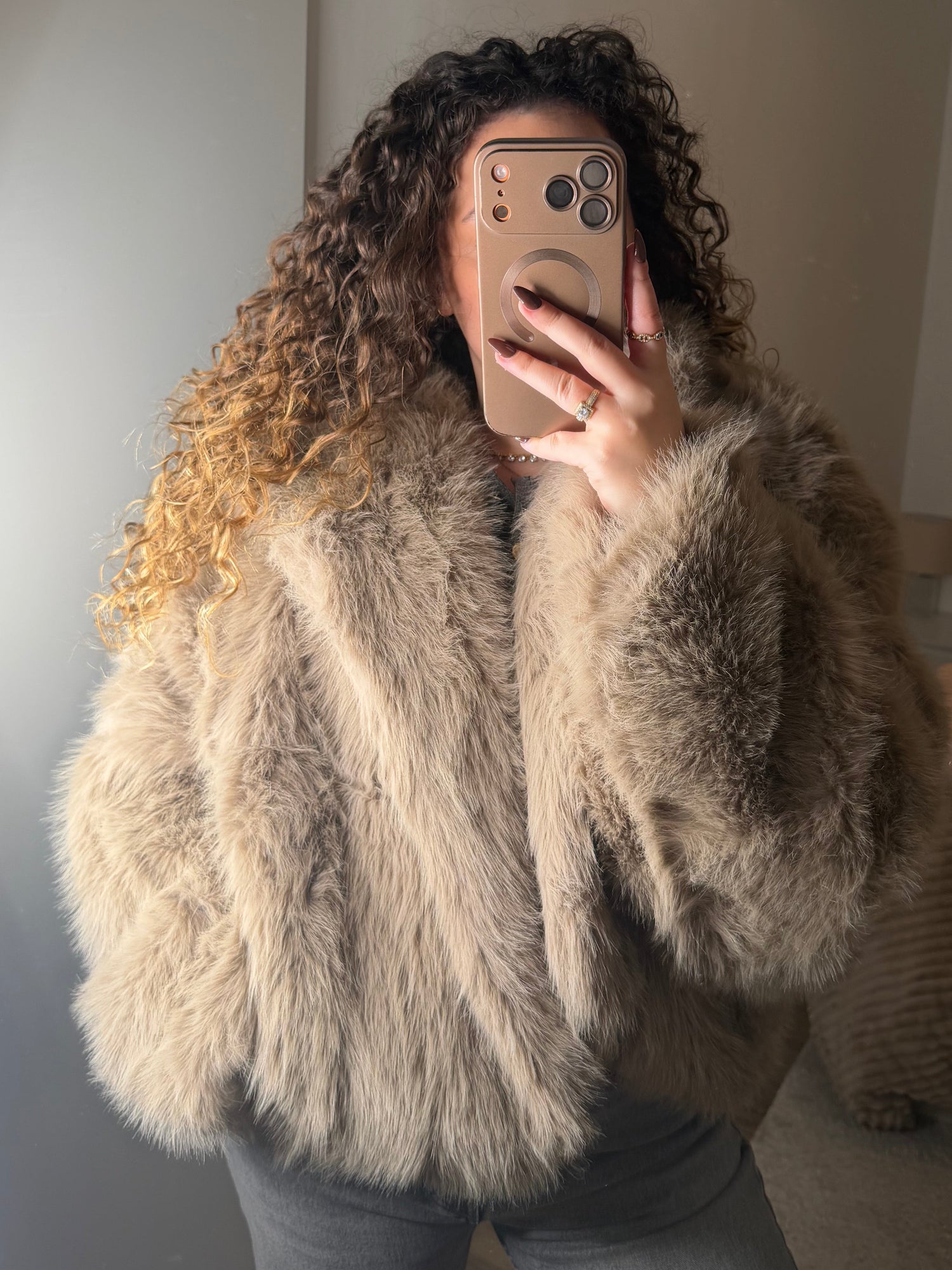 Fourrure à capuche taupe