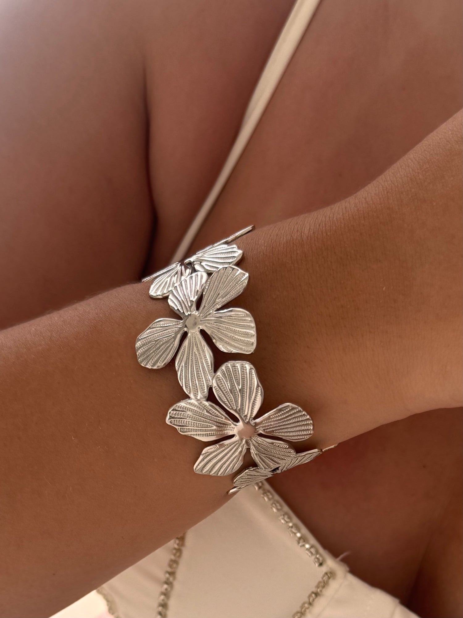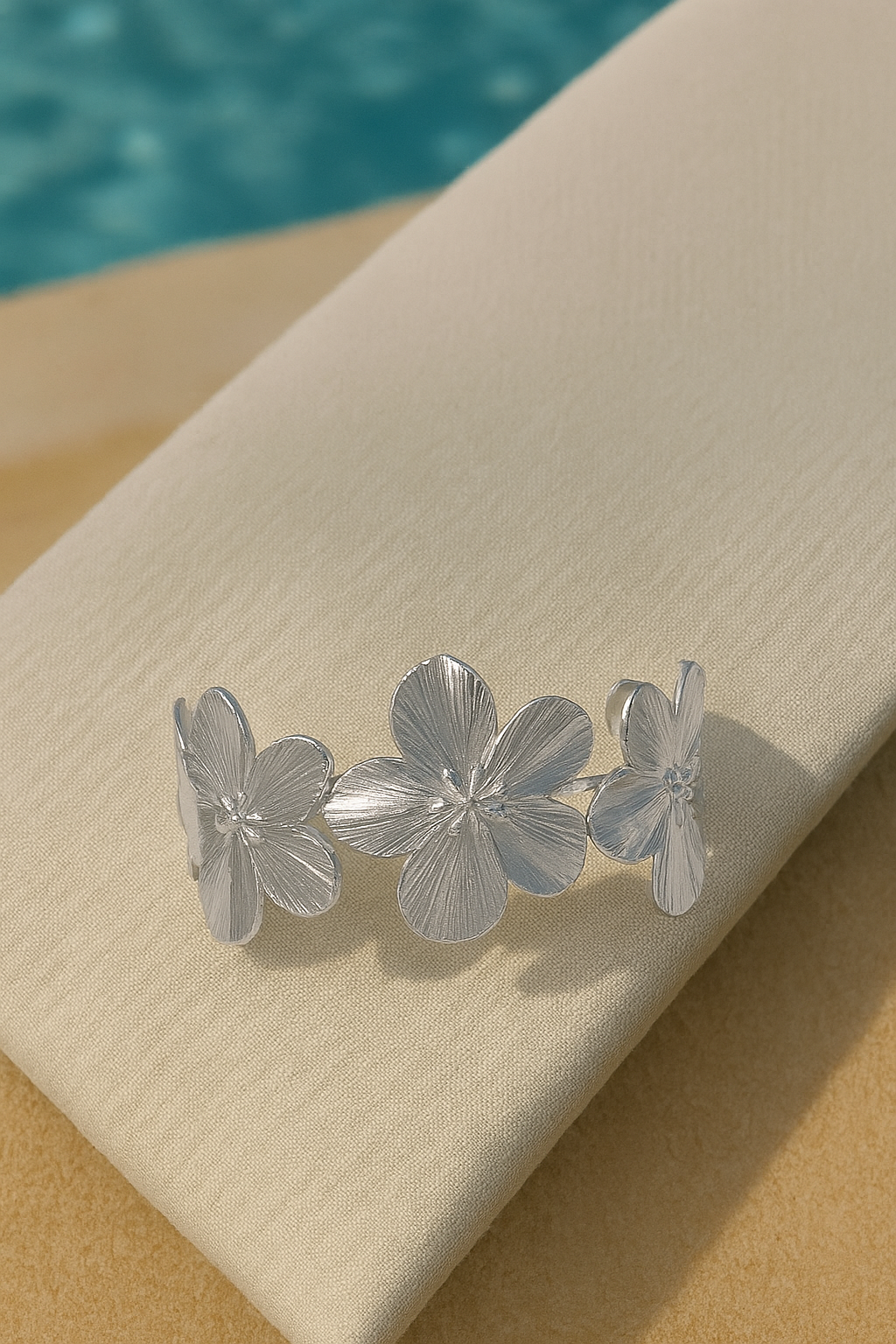 Ce jonc célèbre la beauté des fleurs avec ses trois motifs finement ciselés qui semblent éclore sur la peau. Léger, raffiné et intemporel, c’est la touche romantique qui illumine toutes vos tenues.